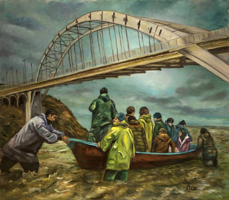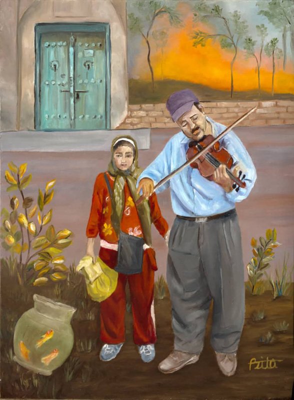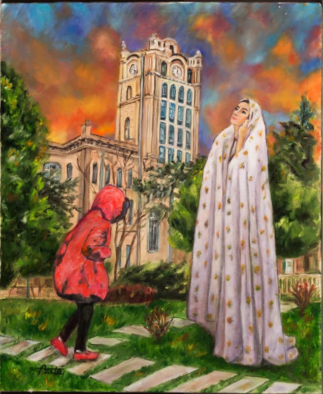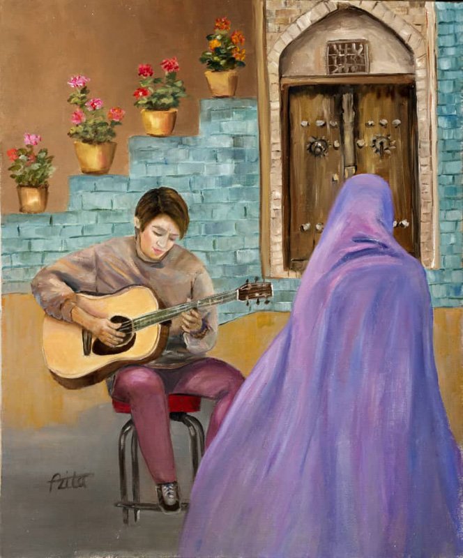 A glance at Azita vahdatdoust’s artistic works reveals how she intentionally portrays herself in the past and, in confronting events, links herself to the present, much like the fusion of color and words in her works. Sometimes this leads to the definition of imagination and reality together, and sometimes it explores what is etched in her mind with a purposeful contradiction, independent of each other. The stories are often written as accounts of real memories, and the painted images serve as time machines, transporting us across memories in an instant, with just a glance and focus.