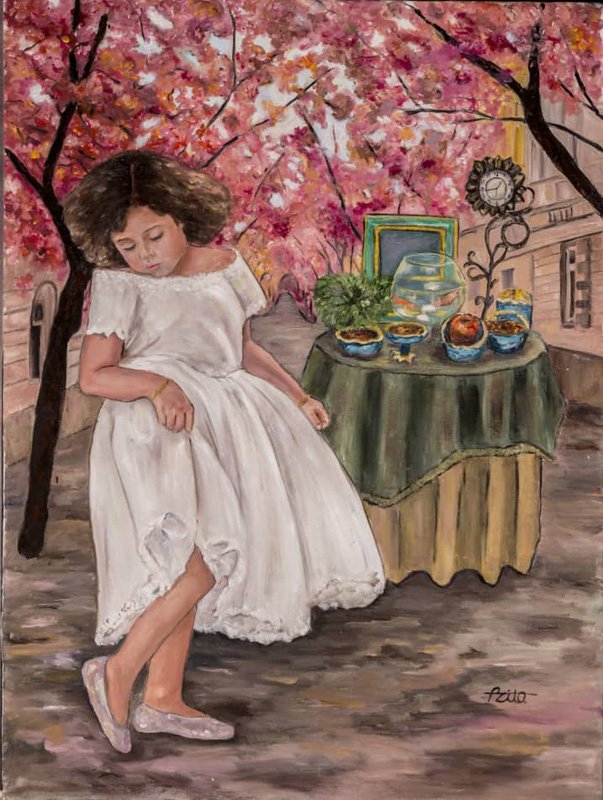 Her quest for fresh and unique subjects opened the doors to the world of writing. She began writing short stories and creating paintings for each story, founding a new method that is unique in its own right.