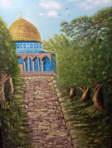 Sanatçının üretimlerinde tarihi ve kültürel mekânlar da önemli bir yer tutar. Mescid-i Aksa gibi simgesel yapıtları ele aldığı tablolarında, geçmişin izlerini çağdaş bir estetikle yeniden yorumlar.